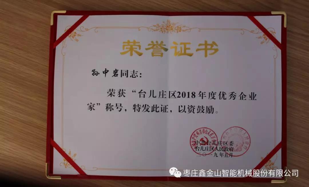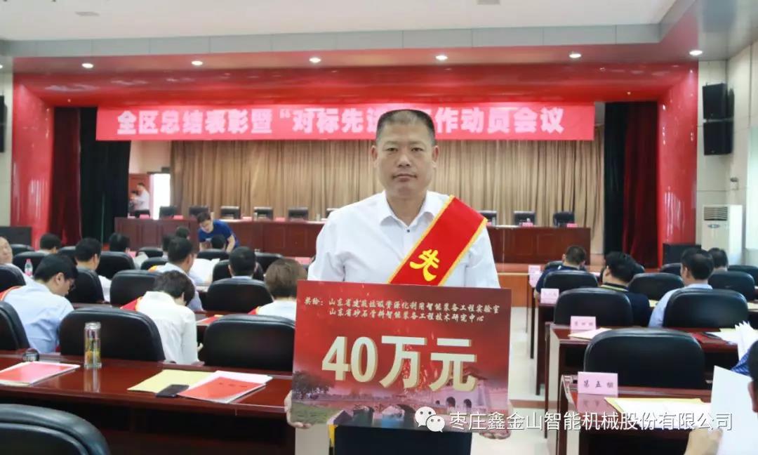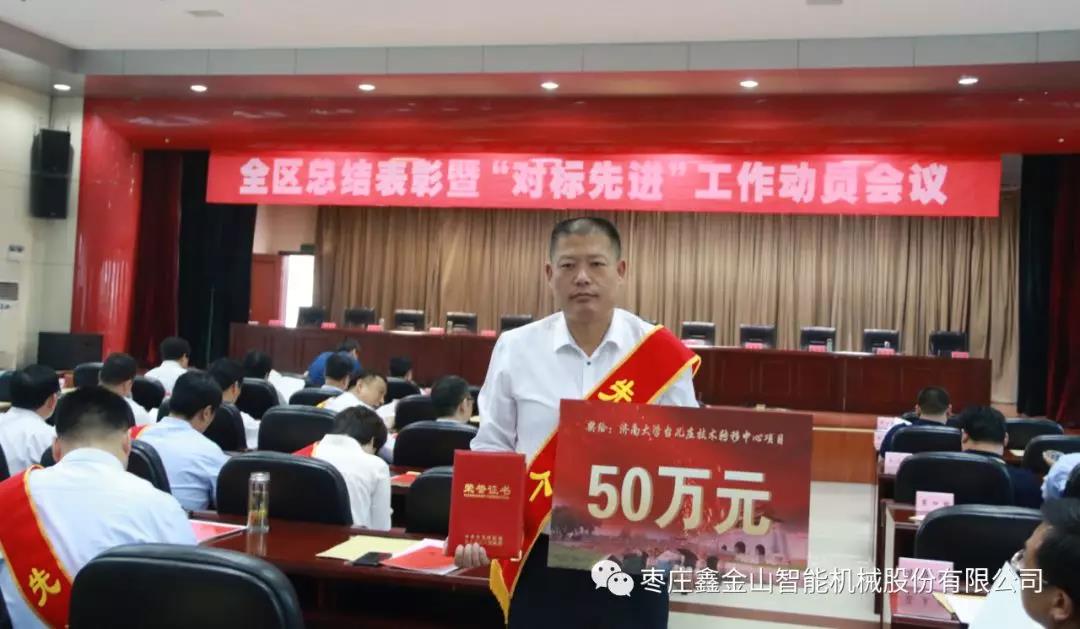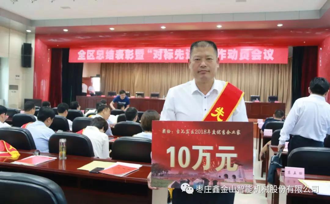 5月31日上午,臺(tái)兒莊區(qū)總結(jié)表彰暨“對(duì)標(biāo)先進(jìn)”工作動(dòng)員會(huì)議隆重召開,全區(qū)各單位、各部門、各企業(yè)的代表共計(jì)300余人參加會(huì)議。棗莊鑫金山智能機(jī)械股份有限公司董事長孫中巖作為重點(diǎn)骨干企業(yè)的代表出席會(huì)議并獲“優(yōu)秀企業(yè)家”殊榮及獎(jiǎng)勵(lì)。