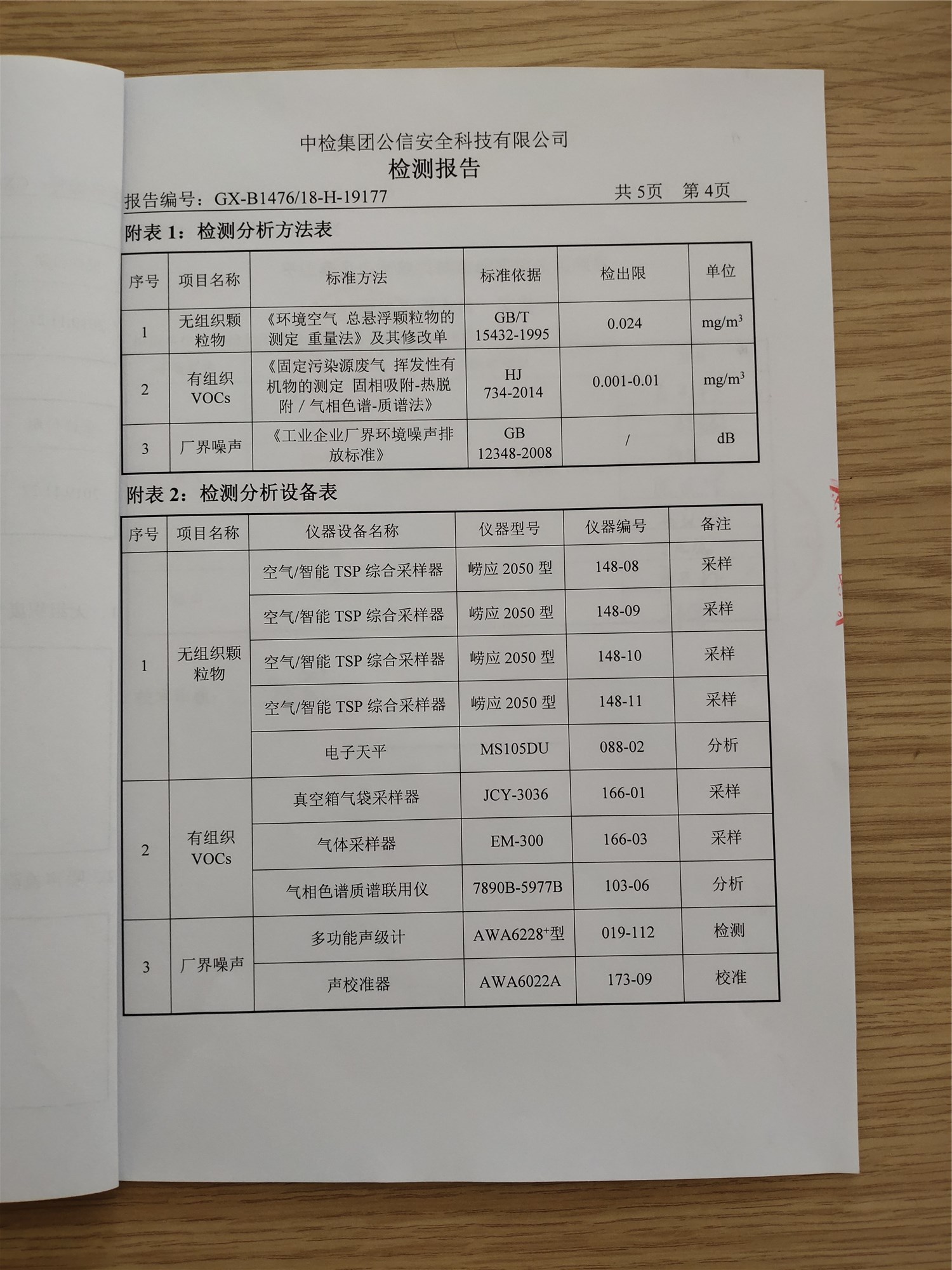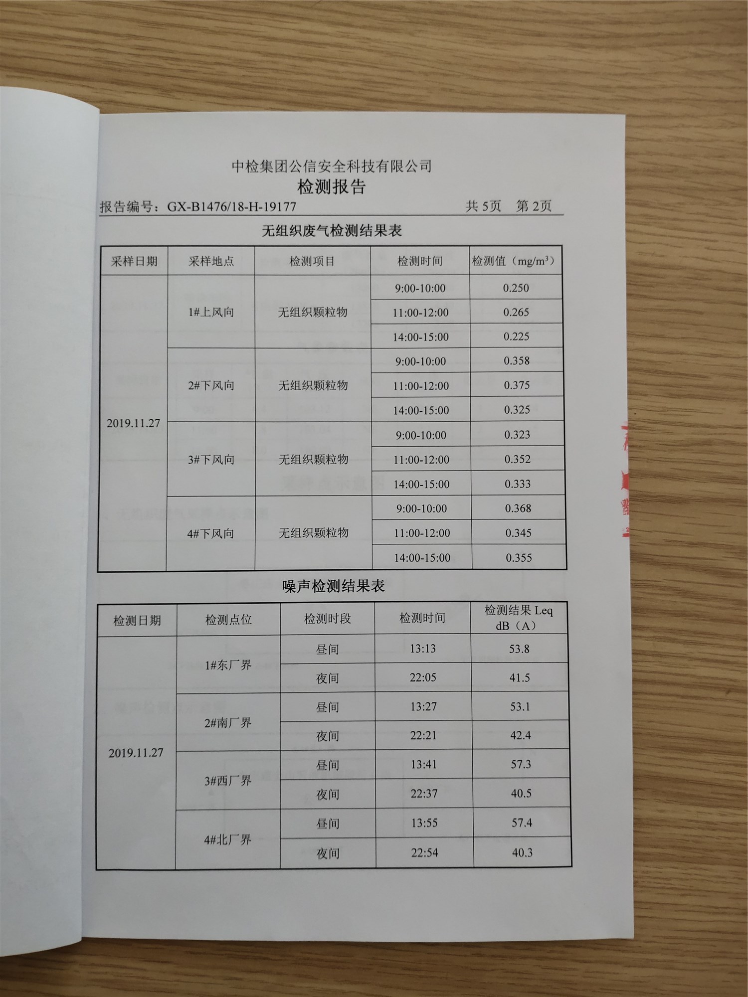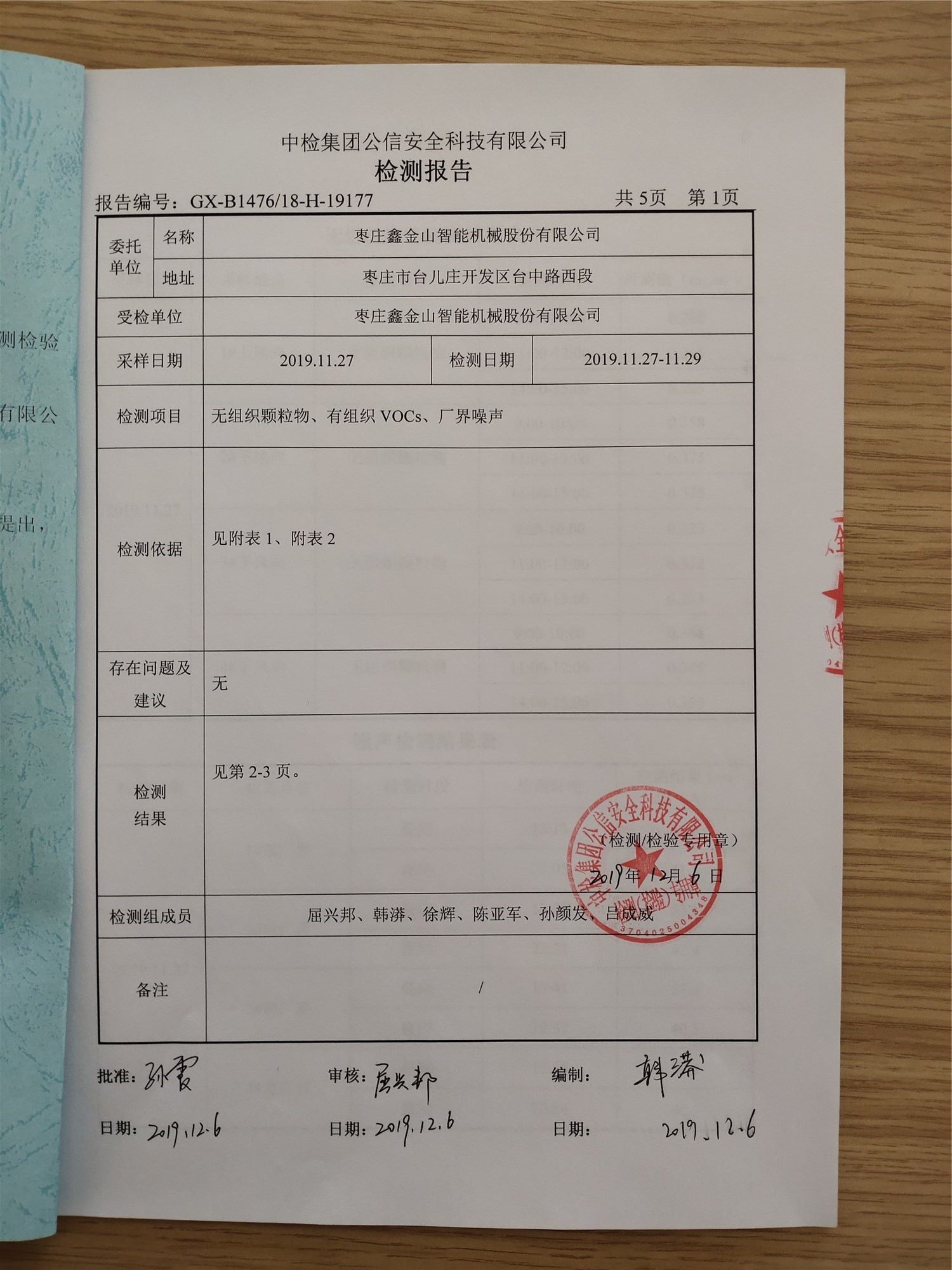 廢氣、噪聲檢測報告