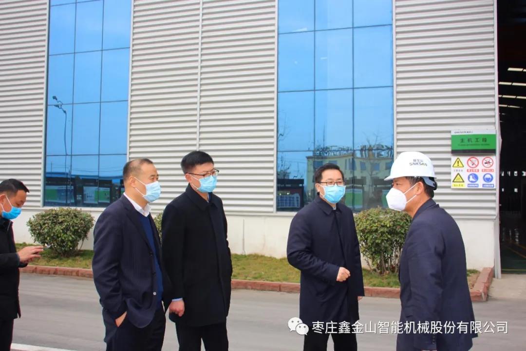 導讀:2月26日上午,臺兒莊區委副書記、區長劉濤,副區長杜軍,區政府辦公室主任王濤,經信局局長趙作明等一行領導蒞臨鑫金山,調研指導公司安全復工復產工作及疫情防控措施落實情況。棗莊市鑫金山智能裝備有限公司董事長孫中巖、外聯部主任孫法虎全程接待,并匯報了公司各項工作情況。