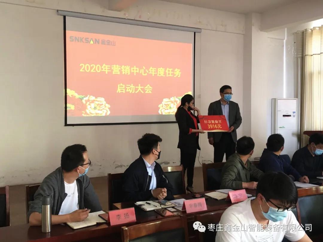 導讀:為進一步落實責任,推進年度目標任務實現。4月29日下午,鑫金山2020年營銷中心年度任務啟動大會在公司總部順利召開。公司總經理裴尚、副總經理王運豐、營銷總監胡振霖、采購總監孫啟祥、企管中心副總監劉洪選、生產部部長徐超出席會議,營銷中心骨干100余人參加了本次會議,會議由銷售部部長狄輝主持。