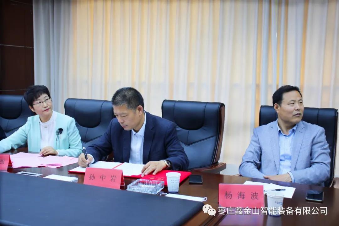 會議由臺兒莊區副區長王曉麗主持。臺兒莊區委常委、組織部部長,區招才引智專班組長王立軍,區科技局局長王友峰,棗莊鑫金山智能裝備有限公司董事長孫中巖,以及區委組織部人才科和區科技局相關負責人出席鑫金山會場簽約儀式。