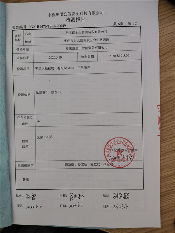 鑫金山智能機械檢測報告