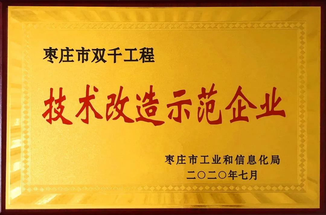 在會議經驗總結交流會現場,公布了棗莊市“雙千”工程首批技術改造示范企業名單,鑫金山成功榮獲此榮譽并授牌。