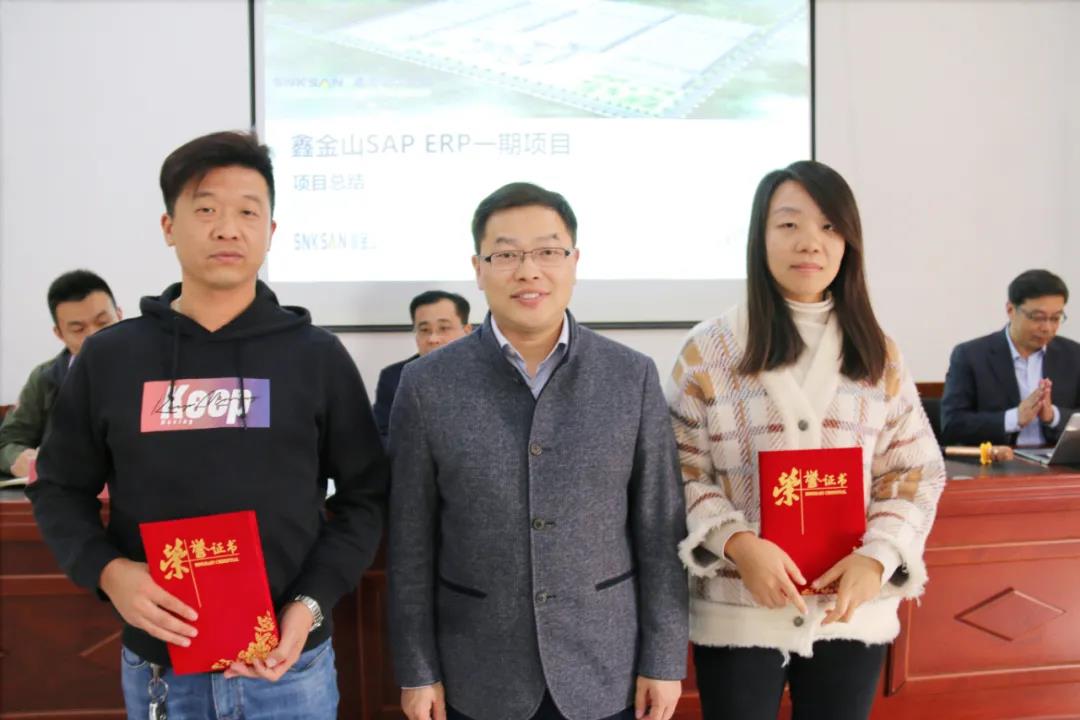 導讀:近日,棗莊鑫金山智能裝備有限公司SAP ERP一期項目總結會暨表彰會在公司總部順利召開。鑫金山董事長孫中巖,總經理裴尚,副總經理王運豐,上海韋地總經理曹棟亮,以及SAP顧問團隊、鑫金山公司中高層管理人員、各業務部門關鍵用戶等參加了本次會議。