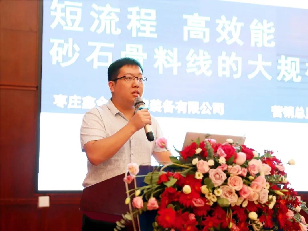 在本次論壇上,棗莊鑫金山智能裝備有限公司胡振霖總監作了《高效能、短流程砂石骨料生產線的大規模應用》的主題報告。詳細介紹了制備高品質砂石骨料的關鍵技術以及工藝,并介紹了鑫金山高效能短流程綠色骨料線工藝流程短、高效高產、粒型優、低能耗、石粉可控的5大核心優勢。