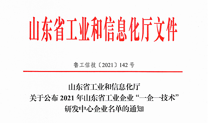 山東省一企一技術(shù)研發(fā)中心